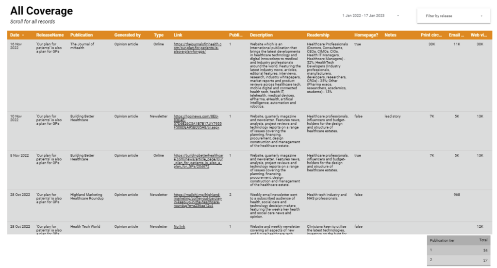 - Total coverage current YTD – this is the number of pieces that have been achieved this year